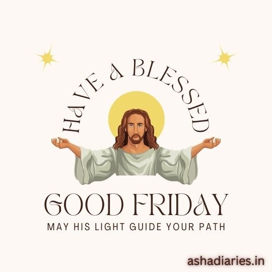Good Friday image featuring Jesus Christ with a halo, offering blessings and guidance. Ideal for sharing a message of faith and hope on this holy day.